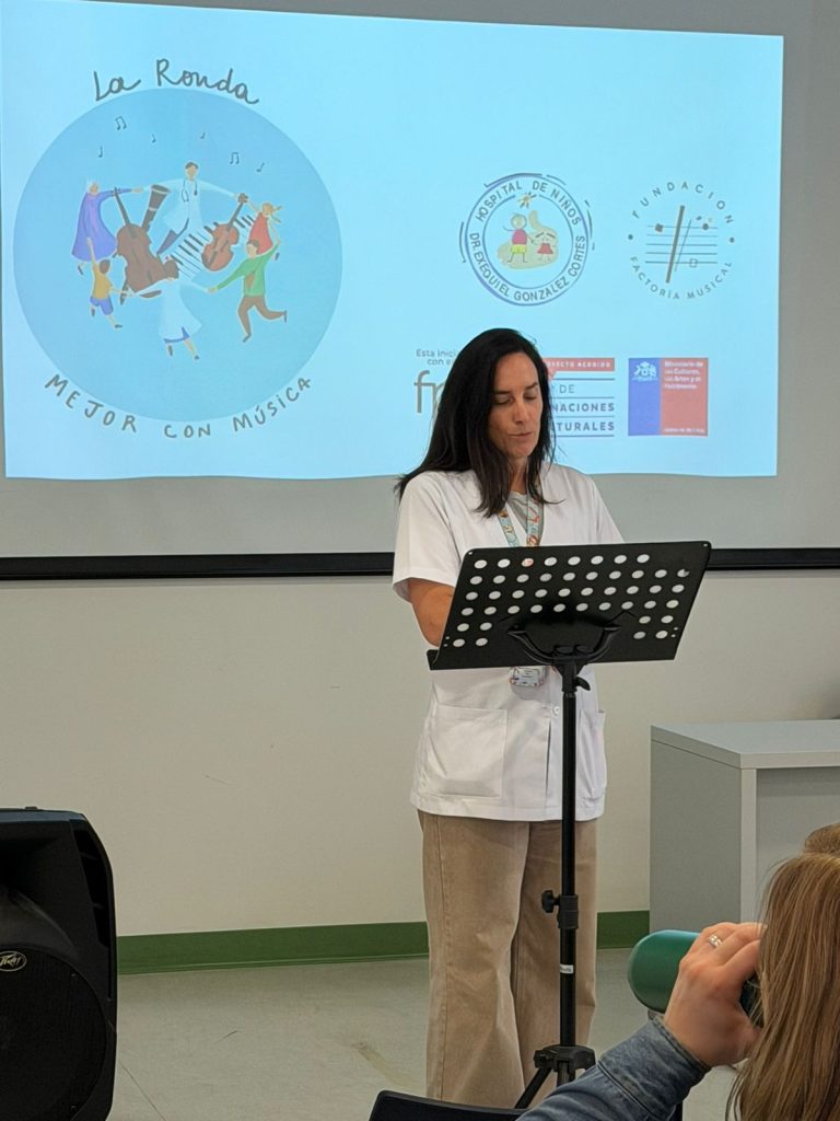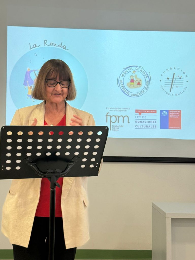 “La música acompaña, alivia, conecta… y ayuda a humanizar la experiencia hospitalaria. Conozco lo que se vive en estos pasillos: la espera, la incertidumbre, pero también la fortaleza enorme de los niños, sus familias y los equipos de salud”. Cecilia Piñera Morel- Directora FPM